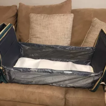 What a unique multi functional travel bag which is a combined diaper bag backpack, bassinet, nappy bag, travel crib, portable baby changing station. With insulated 3 bottle pockets, 5 compartment inside and Concealed waterproof zip pockets at the back and inside, it’s roomy enough to store all baby stuffs, included with removable changing pad/mattress. Thick, durable, machine washable material and foldable easily, this bag is an all in 1 small and light travel bag to accommodate baby needs and mom. It can be worn as shoulder bag, stylist backpack or hanging on a stroller, which makes travel more convenient and easier. I am sold with all the features this bag has and can’t wait to use it for my upcoming baby!