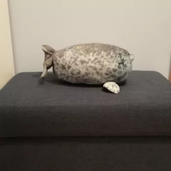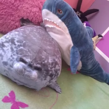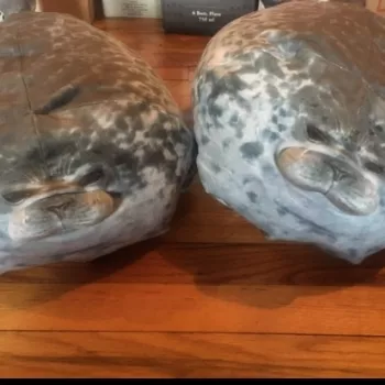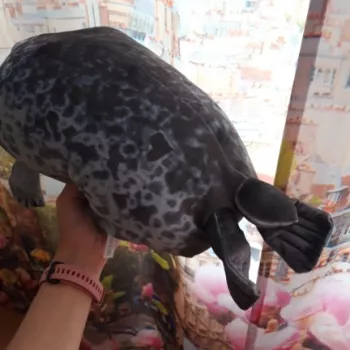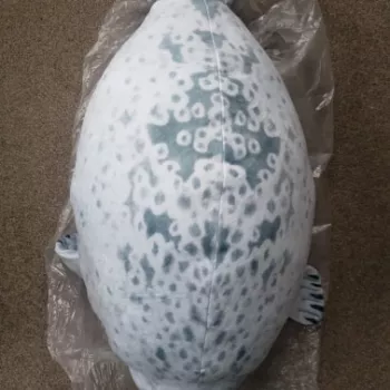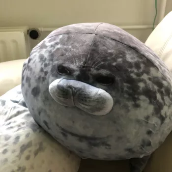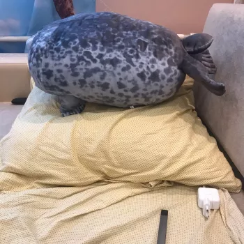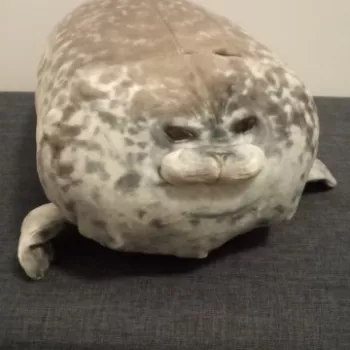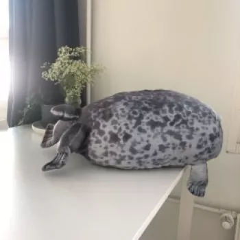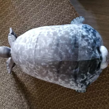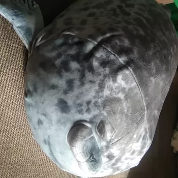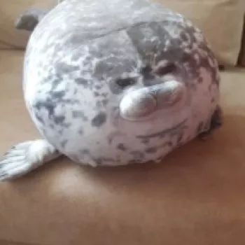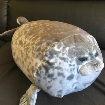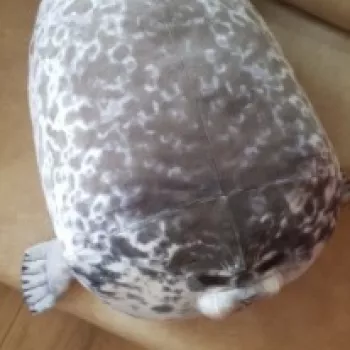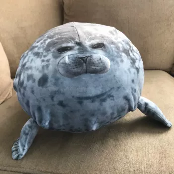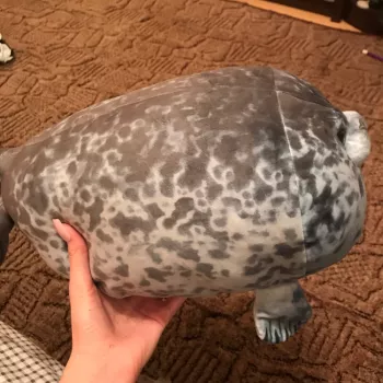 My boyfriend loves seals so when I saw this I just had to get it for him! It’s very soft, fluffy and squishable. However, based off the pictures I thought it was going to be a little bigger. Boyfriend still loves it though! He uses it as a travel pillow! Ha!